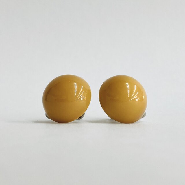 樹脂カボションビーズイヤリング/約20mm/マスタード/made in japan