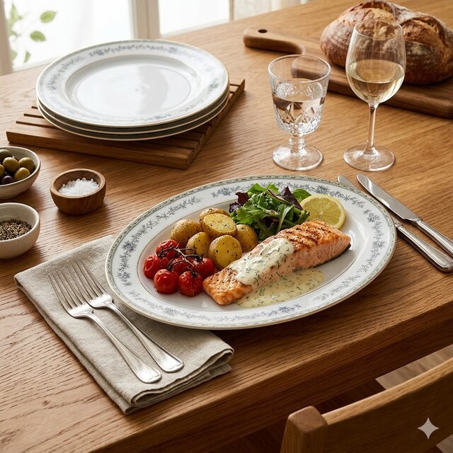 休日の特別なディナーに: ローストビーフやグリル料理を盛り付けて、レストランのような雰囲気を。