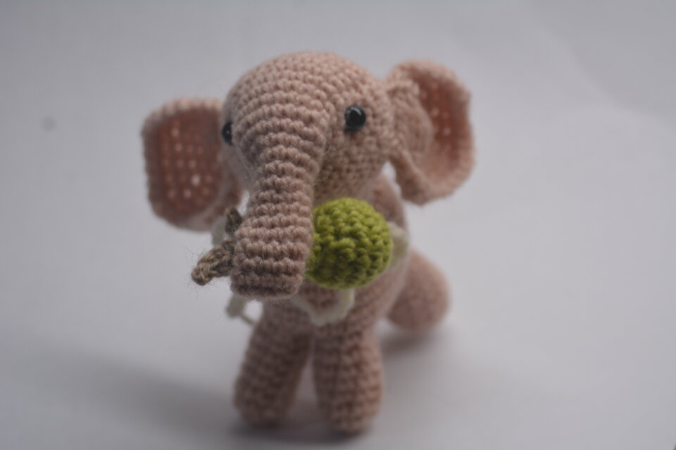 ウール100%毛糸を使用して 可愛いマル耳象を作りました