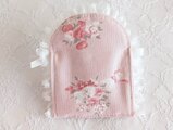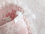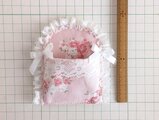 ピンクの花柄生地にレースを合わせ、やさしく可愛らしい雰囲気に仕上げました。