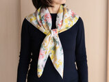 華やかな花柄が魅力的なシルクスカーフです