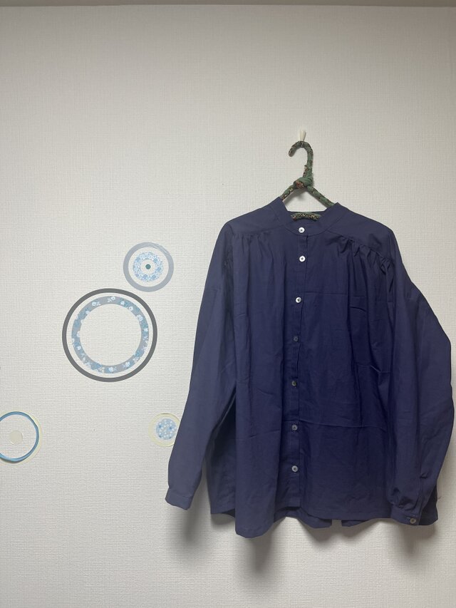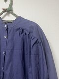 たっぷりと生地を使い肩と背中のヨーク切り替えにギャザーを寄せました。ゆったりとしたシルエットですが、決してもたつかない優秀なデザインです。