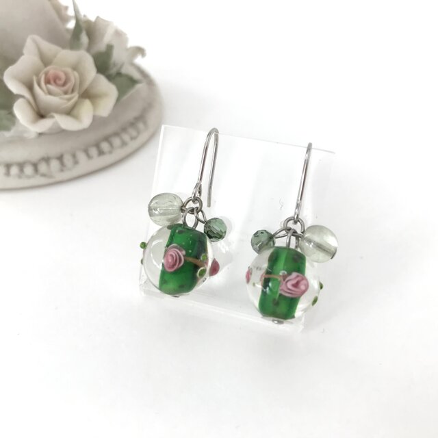 #とんぼ玉 #トンボ玉 #とんぼ球 #緑 #和 #和風 #透明 #クリア #ビーズアクセサリー #バラ #ローズ #ピアス #グリーン #丸 #着物 #シンプル #スワロフスキー #大人かわいい #上品 #誕生日 #ビーズ #ガラス #透明感 #エメラルド #シャボン玉 #秋 #夏 #春 #涼 #ポップ #フック