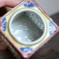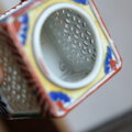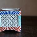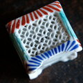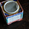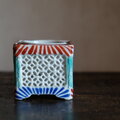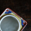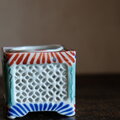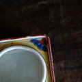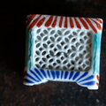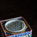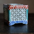 透かし彫りで素敵◆時代物 花文色絵盃台 キャンドル入れ 骨董・antiques インテリア 江戸〜明治