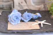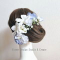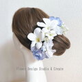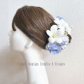 水色の薔薇とプルメリアのヘッドドレス 紫陽花 スィートピー 青い薔薇 ウェディング 結婚式 ブライダル 髪飾り サムシングブルー