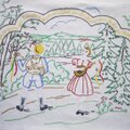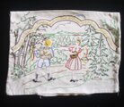ノスタルジック刺繍 ピローケース 唄う二人 ドイツヴィンテージ