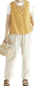 上質な国産リネンで重ね着に最適なベストを制作いたしました。シンプルなデザインでややゆったりめのサイズ感、Tシャツ、ロンT、ブラウスやシャツ、タートルネックやハイネックまでどんなものにも重ね着しやすい万能な一枚です。