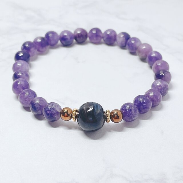 ✦1点限定✦迷いや不安を整理し、前向きな行動を支える 天然石ブレスレット|チャロアイト・レピドライト パワーストーンNo.859