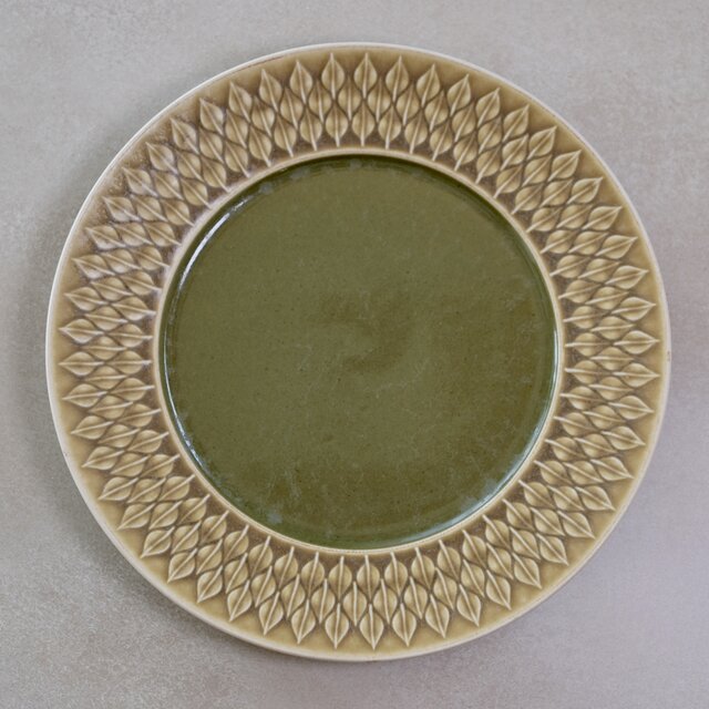 中央には深みのあるオリーブグリーンの釉薬が施され、