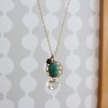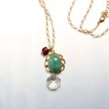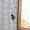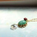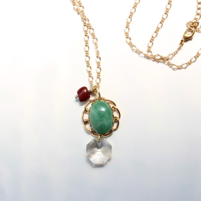 癒しのグリーン、天然石アベンチュリンと、スワロフスキークリスタルを組み合わせた、クラシカル・モダンなムードのペンダント・ネックレスです。