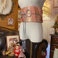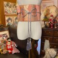 【名古屋帯 リメイク サッシュベルト 飾り帯 和洋折衷 ハンドメイド レトロ 古着 L〜LL対応 曙色の地紋 × 黄金のリーフ・パルス ROB-212】