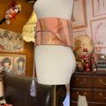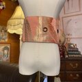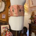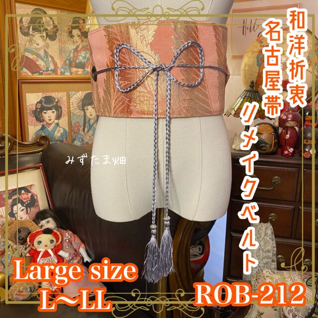 名古屋帯 リメイク サッシュベルト 飾り帯 和洋折衷 L〜LL対応 曙色の地紋 × 黄金のリーフ・パルス ROB-212