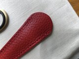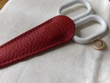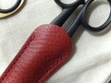 ・革は薄めの革を使っております。質感もソフトレザーのような柔らかな質感で、ハサミの形に馴染みやすいケースです。