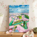 「北の大地に咲く、桃色の星」は、北海道・函館の春を描いた特別な油絵作品です。厳しい冬を乗り越えた大地に、大きな桜の星が舞い降りる瞬間を捉えたこの作品は、息を呑むほどの美しい五稜郭の絶景を見事に表現しています。情緒あふれる背景がどこまでも広がり、まるで春の訪れを告げる一瞬の奇跡を感じることができるでしょう。