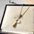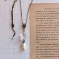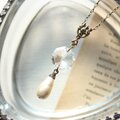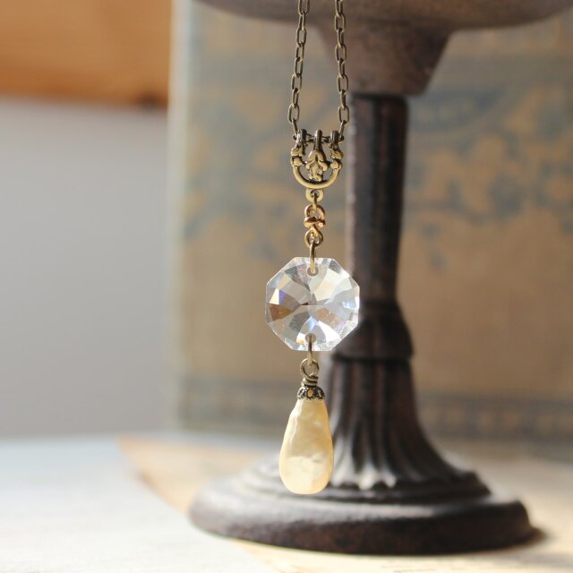 透明度の高いクリスタルガラスに、ティアドロップ型のバロックガラスパールを揺らせた、アンティークのムード溢れるネックレスです。