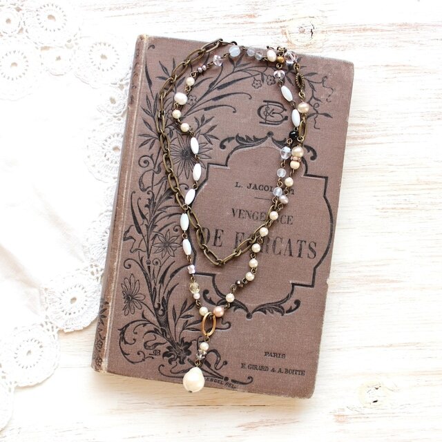 そんな美しい素材たちを集めて完成したのは、ヴィンテージなムードのペンダント・ネックレス。