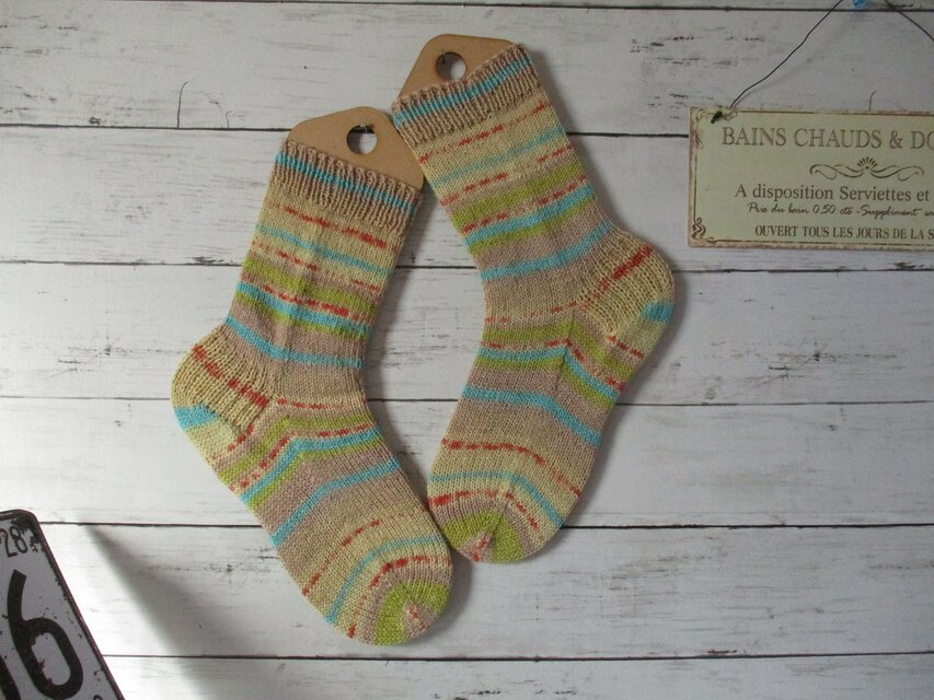 ドイツのブランド Opal Herbstmelodie 11125 Maronenduftで編んだ靴下です。