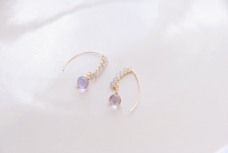 アメジストをポイントにしたマーキスフックのピアスです