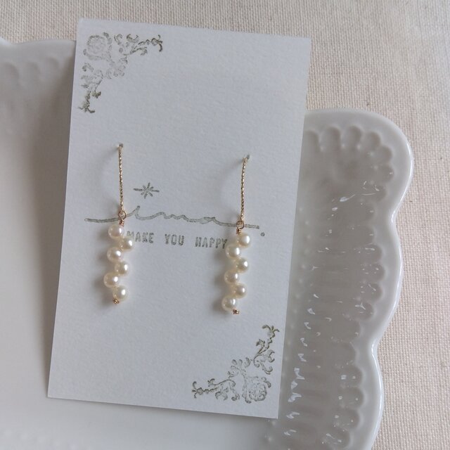14kgf 淡水クレオパトラパールの柔らかジグザググリッターピアス
