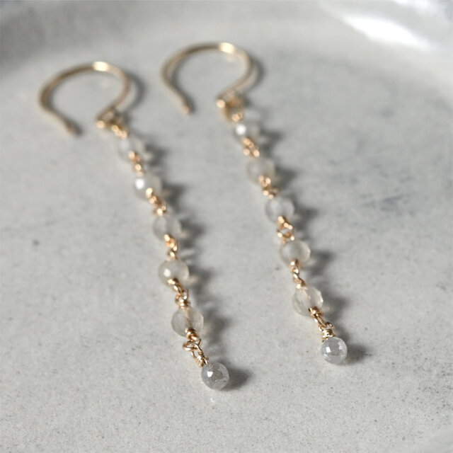 ナチュラルダイヤモンドとグレームーンストーンのピアス・イヤリング変更可・14kgf