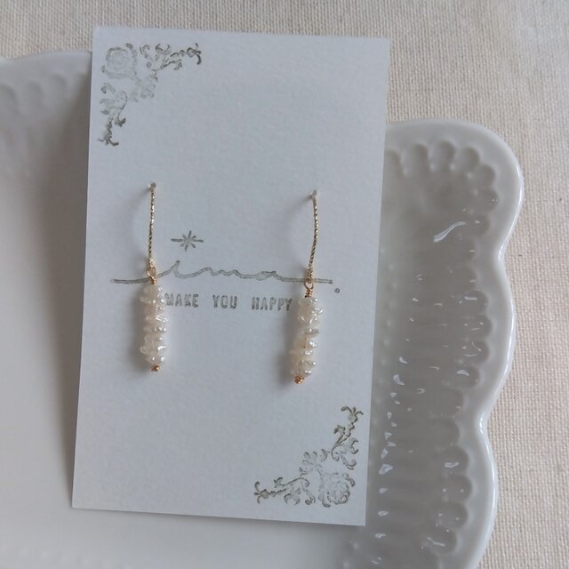 14kgf 淡水ケシパールの凸凹上品グリッターピアス