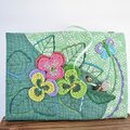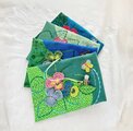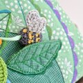 ミシンステッチや布用の絵の具で描いたグリーンなど、