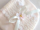 中央には繊細なレースをあしらい、リボンと小さな桜のモチーフを飾って