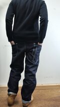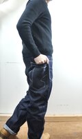 デニムは洗濯により3㎝ほど縦方向に縮みますので、ご不安であればご相談ください。