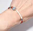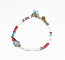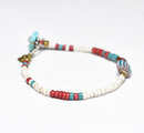 4層フラットシェブロンビーズとホワイトビーズ、金赤ホワイトハーツ、ターコイズブルーシェブロンビーズなどを繋いだブレスです。