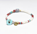 4層フラットシェブロンビーズとホワイトビーズ、金赤ホワイトハーツ、ターコイズブルーシェブロンビーズのブレス(ターコイズ留め金)