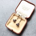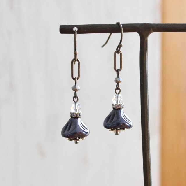 シックな色のお花が耳元で揺れる、幼い印象にならない上品なピアスです。