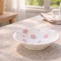 器の中にふわりと舞う桜の花が、食卓を温かく華やかに彩る美濃焼の深皿です。