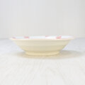 縁を彩るピンクのラインと、緩やかに波打つような開きのよい形状が、手作りのような優しい風合いを醸し出しています。