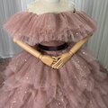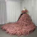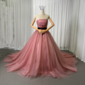 豪華!カラードレス 2ways ピンク シークインチュール 取り外しオフショルダー オーバースカート ボリュームドレス 花嫁