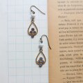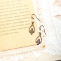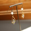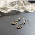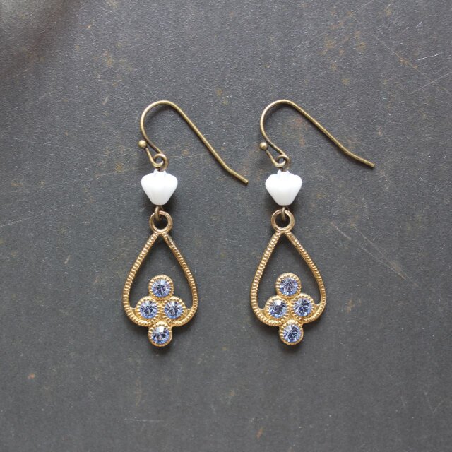 ヴィンテージなムードの真鍮コンポーネントに小さな白いお花をあしらったピアスです。
