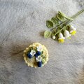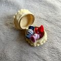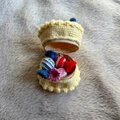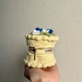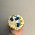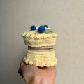 お花とブルーベリーをトッピングしたケーキ型の編み物ポーチです。