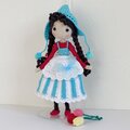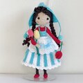 ♣黒色のロングヘアー、赤と青色で華やかなアレンジてあり、インテリアとして飾れるお人形さんです。