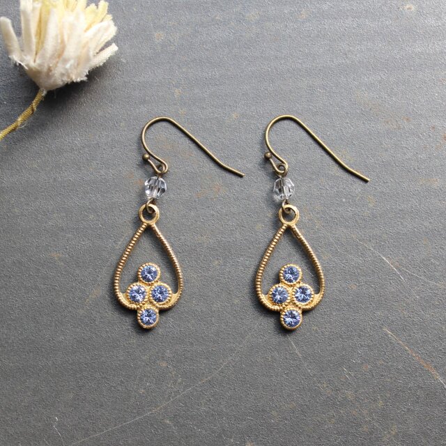 ヴィンテージなムードの真鍮コンポーネントにスワロフスキークリスタルをあしらったピアスです。