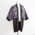 昭和初期〜中期頃 メンズ羽織 縞模様 裏地柄 ジャパンヴィンテージ 和洋折衷スタイル 古布 リメイク素材