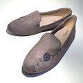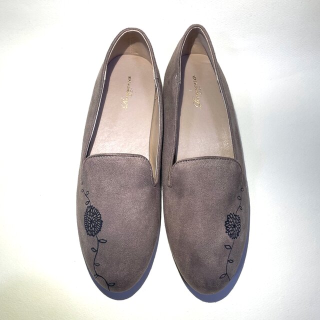 ◆残サイズのみSALE◆ 花の線画 やわらか軽量フラットオペラシューズ(グレージュ)大人ナチュラル