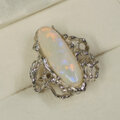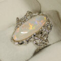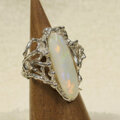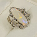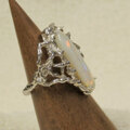 赤や緑の遊色効果(プレイオブカラー)の綺麗なオパールを留めます指輪です。色合いだけでなく、表面の光沢感も綺麗なオパールです。