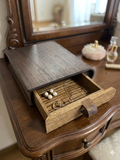 引き出しを閉じる瞬間に、磁石が「カチッ」と吸い付くような心地よい手応えを実現。無垢材の確かな重みとともに、日常の小物を整理する時間を贅沢なひとときへと変えてくれます。