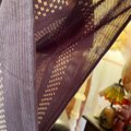 涼やかなブラウンパープルの夏着物を贅沢に使用。微細な粒子のような地紋に、流れるような文様が浮かび上がります。夏着物ならではのシアーな質感が多次元的な奥行きを生み出し、都会的で洗練された空気感を最適化。