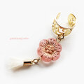 お花型のビーズと小さな白いタッセルのイヤーカフです