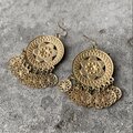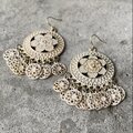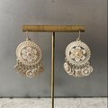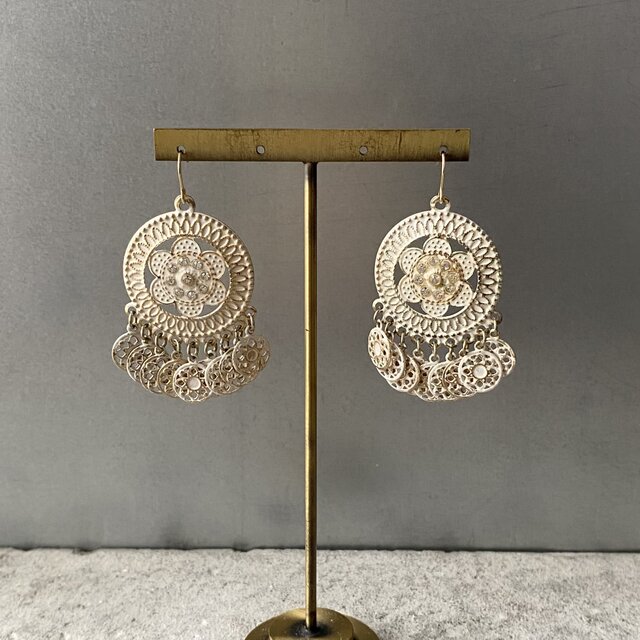 エスニックな雰囲気のUSAヴィンテージピアス。サークルパーツが軽やかに揺らめくお洒落なデザイン。ホワイトカラーがスタイリングの差し色になり、お顔まわりに華やかに彩ってくれます。