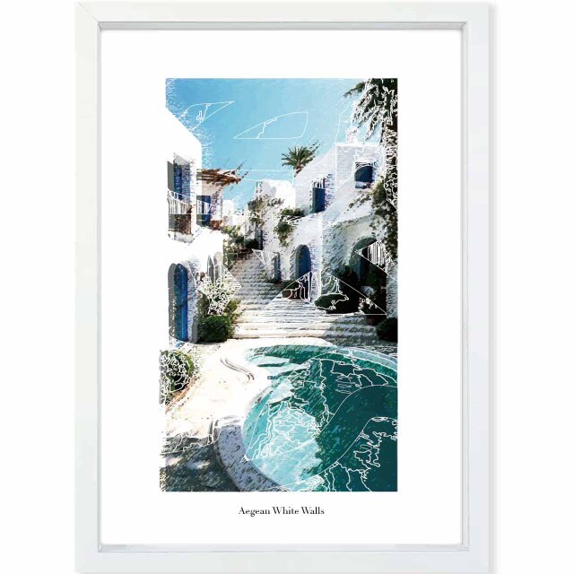 エーゲ海の情景をイラスト化したモダンポスター。