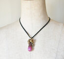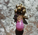 チェリーピンクマーブルウエディングビーズとたわわな鈴&ガーネット、アフガンパーツを繋いだペンダントトップです。