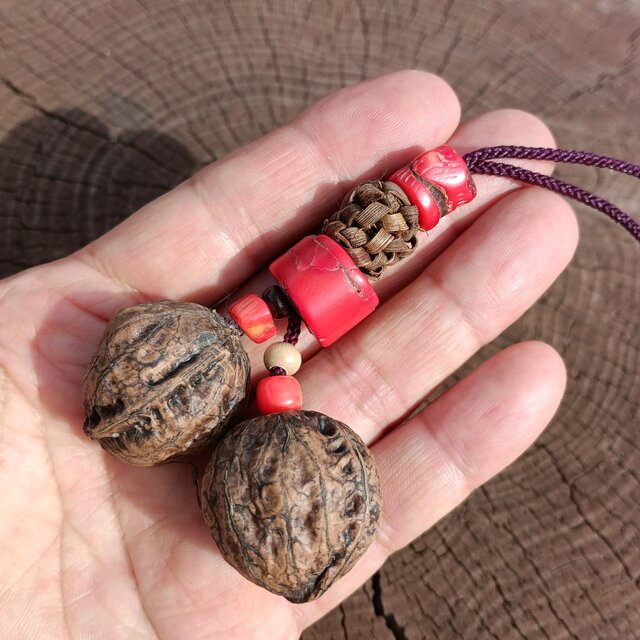 山葡萄の蔓と山珊瑚と胡桃のチャーム ダブルタイプ 20260201-C