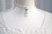 【受注製作】レジンアート エメラルドカットとタティングレースとサテンリボンのチョーカー〈桐の葉蔭〉