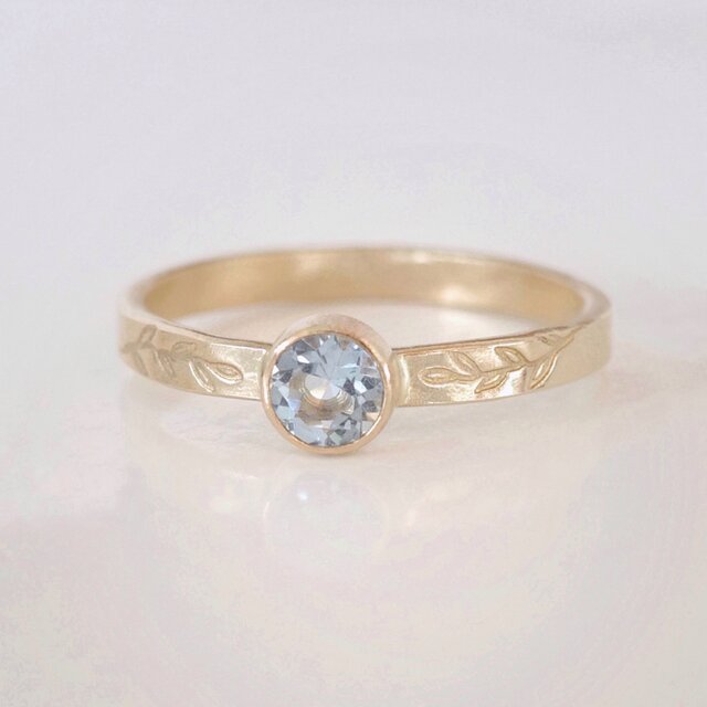 アクアマリン オリーブリーフ リング 14kgf ピンキーリング対応 3月誕生石 ご褒美 ギフト